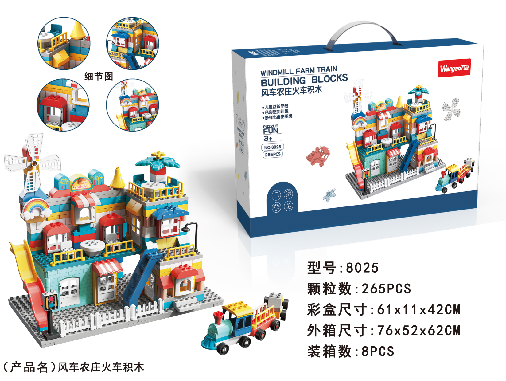 風(fēng)車(chē)農(nóng)莊火車(chē)積木 256顆粒/8025
